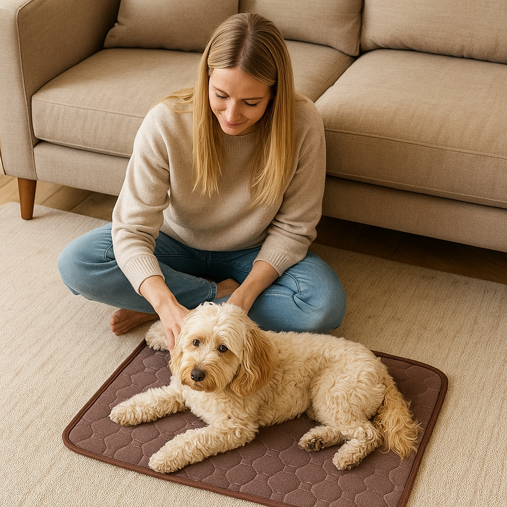 Die rutschfeste Unterseite sorgt dafür, dass der Teppich an seinem Platz bleibt, selbst wenn dein Hund darauf herumtollt oder sich schüttelt.